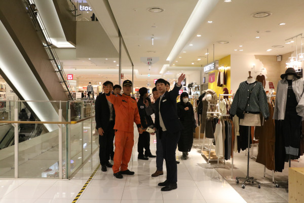 경기 군포소방서는 7일 설연휴를 대비해 현장중심의 예방행정 실현을 위해 롯데피트인 산본점을 방문해 현장 안전컨설팅을 실시했다. 사진은 소방서장 및 관계자들이 현장을 점검하는 모습. (사진제공=군포소방서)