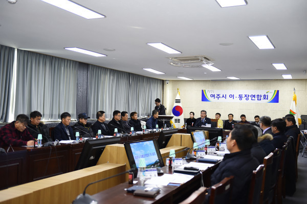 경기 여주시 이·통장연합회는 지난 6일 시청 상황실에서 지역내 이·통장 20여명이 참석한 가운데 ‘2018년 이·통장연합회 연시총회’를 개최하고, 읍·면·동 협의회장 및 사무국장 인사와 임원 선출 등을 실시했다. 사진은 연시총회가 진행 중인 모습. (사진제공=여주시청)