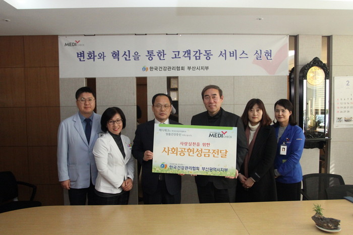[부산=최성일 기자]부산지방보훈청(청장 민병원)은 지난 8일 한국건강관리협회 부산광역시지부(지부장 김종해) 의 “설 명절 보훈가족 사랑나눔” 위문금 1백만원 전달식을 가졌다고 밝혔다.