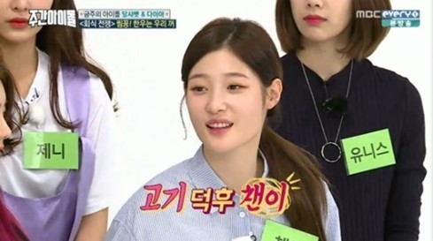 이날 다이아와 달샤벳은 한우를 두고 게임을 펼치게 됐다. 게임에 앞서 육식마니아를 묻자 다이아 멤버들은 모두 정채연을 지목했다. 정채연은 고기 생각만으로도 즐거워하면서 "저 고기 되게 좋아하는데, 혼자 3인분을 먹는다"고 고백했다.