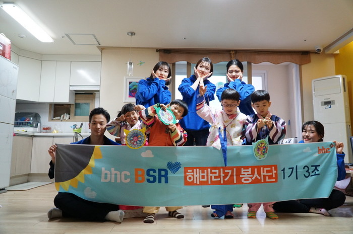 bhc 청년봉사단인 ’해바라기 봉사단‘ 1기 3조는 지난 14일(수) 서울시 은평구에 위치한 ’은평천사원‘에서 봉사활동을 펼쳤다. 설명절을 하루 앞두고 방문하여 어린이들에게 전통예절에 대한 교육을 진행하였으며, 펠트지를 이용한 복주머니 만들기 시간으로 가짜 돈을 이용하여 세뱃돈을 주고 받으며 화폐의 쓰임에 대해 알아가는 훈훈한 시간을 보냈다.