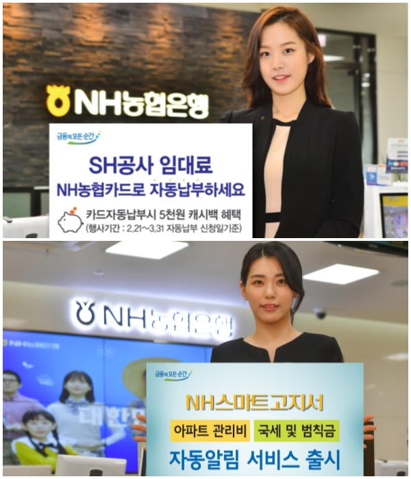 [시민일보=이진원 기자]NH농협은행과 NH농협카드가 아파트 관리비와 국세 및 범칙금 등을 자동으로 알려주는 서비스와 아파트 임대료를 카드로 납부하는 서비스를 각각 마련해 주목을 받고 있다.