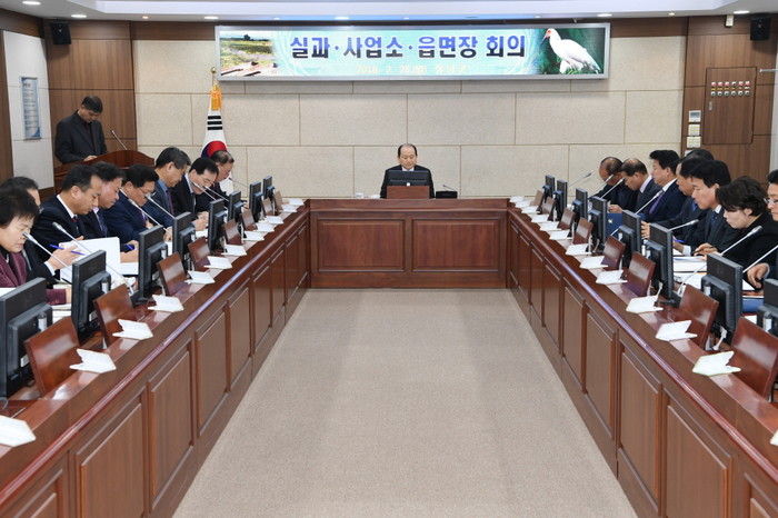 이날 보고회는 군수 임기를 4개월 정도 남긴 시점에서 군민들에게 제시했던 민선6기 공약사항 추진상황을 일제 점검하고, 추진 중인 공약사항 위주로 추진현황보고와 함께 문제점과 대책을 논의하는 등 사업추진에 더욱 박차를 가하여 신뢰행정을 도모하기 위해 마련됐다.