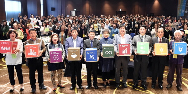 | ▲ 2017년 10월 열린 '지속가능발전목표 시민 한마음 토론회'에 참석한 관계자들이 기념촬영을 하는 모습. | ||
