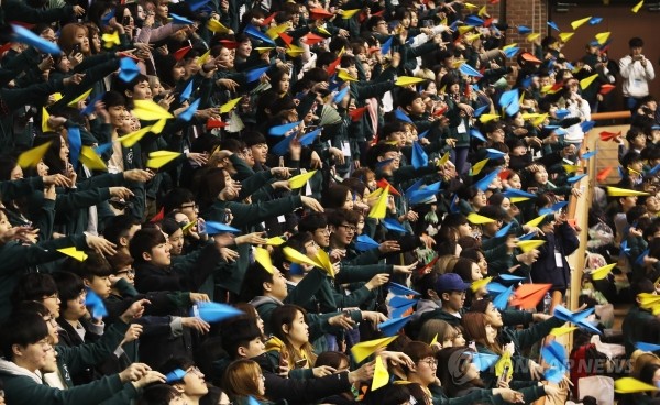 27일 오전 경기도 수원시 성균관대학교 자연과학캠퍼스에서 열린 2018학년도 입학식에서 신입생들이 희망 종이비행기를 날리고 있다.