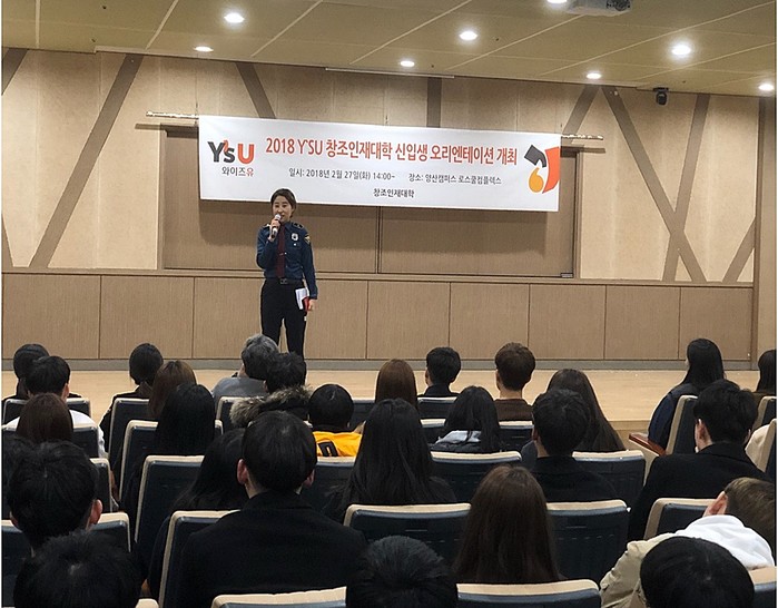 이날 교육은 본교 졸업생 권도균 순경이 후배들을 대상으로 경찰입직 경로를 소개하는 직업 특강을 1부로 진행하였고 한현아 경위는 신입생 대상 발생 할 수 있는 성폭력 관련 법령 및 피해자 지원 제도를 소개하는 것으로 2부를 진행하였다.