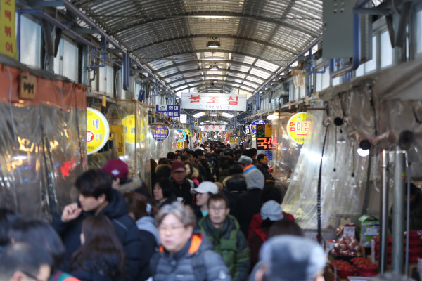 제99주년 3.1절인 1일 서울 서대문구 독립문 영천시장에 고객들이 발 디딜 틈 없이 가득 차있다. 영천시장 인근 서대문형무소역사관을 찾은 시민들이 시장을 함께 찾으며 이날 시장 안은 북새통을 이뤘다. (사진제공=서대문구청)