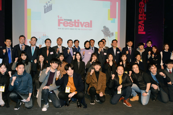 동대문구가 4일 수림문화재단 다목적홀에서 ‘제1회 아이피칭 페스티벌’을 개최했다. 이날 행사에서는 ▲스무살의 기록 ▲야근 줄이기 ▲Introduce my sound 등의 콘셉트로 15개팀의 청년들이 참가했다. 사진은 페스티벌에 참가한 청년들과 관계자들이 기념촬영을 하는 모습. (사진제공=동대문구청)