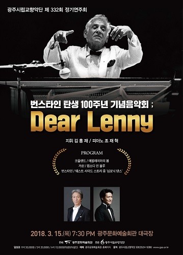 [광주=정찬남 기자]세계적 마에스트로이자 창의적인 교육가, 천재적 작곡가라는 명성과 함께 우리의 가장 친근한 음악가로 기억되고 있는‘레니’올해는 레너드 번스타인이 태어난 지 100년 되는 해이다. 번스타인 탄생 100주년을 기념해 광주시립교향악단이 오는 15일 광주문화예술회관 대극장에서 기념연주회를 개최한다.