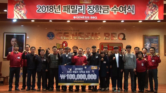 [시민일보=이진원 기자]제너시스BBQ가 최근 경기 이천시 소재 치킨대학에서 ‘2018년 패밀리 장학금 수여식’을 개최했다.