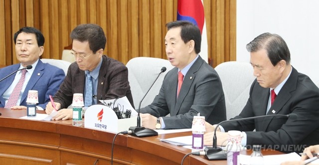 자유한국당 김성태 원내대표가 7일 국회에서 열린 원내대책회의에서 문재인 대통령의 대북특사단이 발표한 남북합의에 대해 “합의문대로라면 기대 이상의 전향적인 성과라는 점에서 일단 환영할만하다”고 발언하고 있다.
