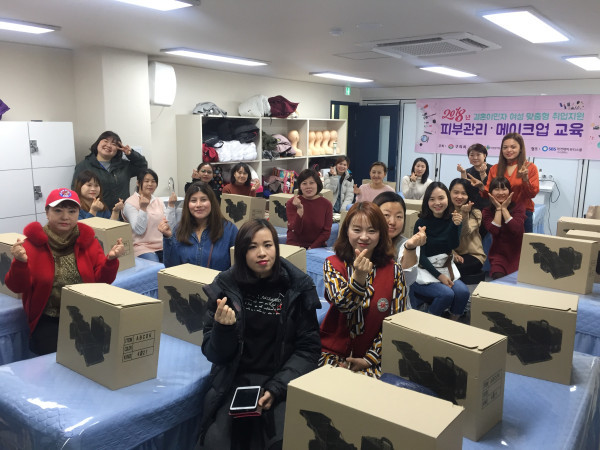 경기 구리시는 최근 시에 거주하는 결혼이민 여성 21명을 대상으로 메이크업 교육을 개강했다. 구리시건강·다문화가족지원센터와 공동으로 진행하는 이번 교육은 '결혼이민 여성 맞춤형 취업 지원사업'의 일환으로 마련됐다. 사진은 교육에 참가한 여성들이 기념촬영을 하는 모습. (사진제공=구리시청)