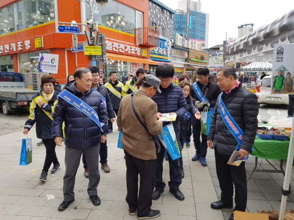 경기 양평군은 국가안전대진단 집중홍보기간 및 개학기를 맞이해 8일 양평 물맑은전통시장에서 ‘제264차 안전점검의 날 캠페인’을 실시했다. 사진은 캠페인에 참석한 관계자들이 지역주민들에게 홍보물을 나눠주고 있는 모습.(사진제공=양평군청)
