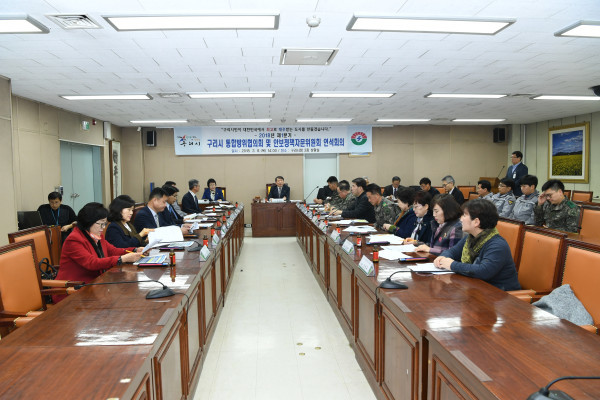 경기 구리시는 최근 시청 3층 상황실에서 ‘2018년 제1분기 구리시 통합방위협의회 및 안보정책자문위원회 연석회의’를 개최했다. 사진은 참여자들이 토론하고 있는 모습. (사진제공=구리시청)
