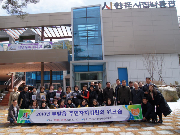 경기 이천시 부발읍 주민자치위원회는 지난 9일 인제군 한국시집박물관 세미나실에서 '2018년 부발읍 주민자치위원 직무교육'을 실시했다. 사진은 참여자들이 기념촬영을 하는 모습. (사진제공=이천시청)