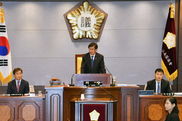 | ▲ 제264회 제2차본회의를 주재하고 있는 문백한 부의장. (사진제공=강남구의회) | ||