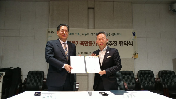 서울 강동구가 15일 배재중학교와 ‘고덕1동 마을가족만들기’ 협약을 체결했다. 이번 협약은 지역내 독거어르신과 학생을 사회적 가족으로 결연해 1·3세대가 함께 하는 따뜻한 마을공동체를 조성하기 위해 추진됐다. 사진은 협약을 기념해 협약식 배재중학교·구청 관계자가 기념촬영을 하는 모습. (사진제공=강동구청)