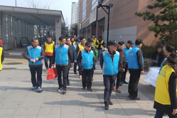 경기 부천시는 최근 대형판매시설 불법 도로적치물 합동단속을 실시해 지역내 백화점 3곳, 대형쇼핑몰 12곳, 대형슈퍼(SSM) 19곳 등 대형판매시설 34곳을 대상으로 실시했다. 사진은 합동단속반이 불법 적치물을 단속하는 모습. (사진제공=부천시청)