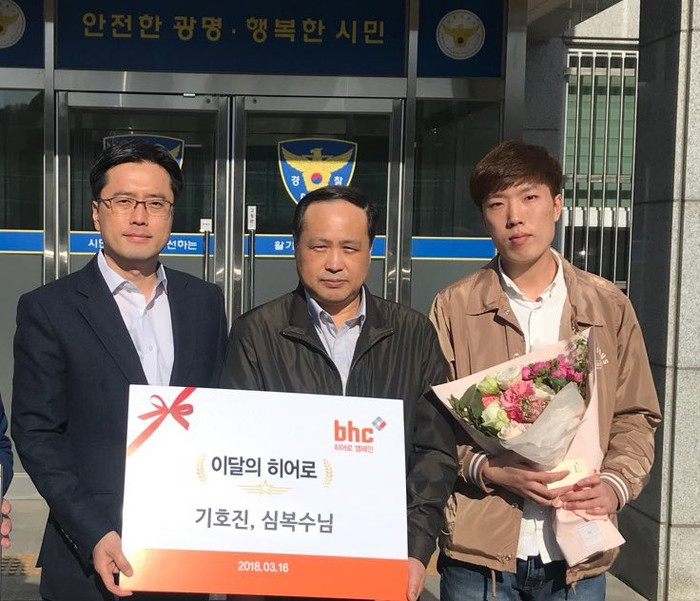 bhc치킨 허명수 상무는 “위급한 상황에 시민들의 하나 된 마음이 얼마나 큰 힘을 발휘하는지 알게 되었다”며 “바쁜 생업으로 그냥 지나칠 수 있었음에도 불구하고 생명을 구하기 위해 용기를 낸 심복수씨와 기호진씨에게 큰 감동을 받았다”며 감사의 뜻을 전했다.