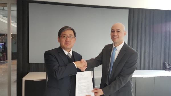 한국저작권보호원이 미국게임산업협회와 게임 저작권 보호를 위한 업무협약을 최근 미국 워싱턴 DC 소재 미국게임산업협회에서 체결했다. 사진은 협약 체결 후 윤태용 원장(왼쪽)과 미국게임산업협회 법무분야부사장 존 베로야가 기념촬영을 하고 있는 모습. (사진제공=한국저작권보호원)