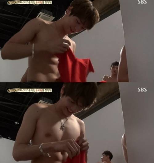 강다니엘은 과거 '마스터키'에서 옷을 갈아입기 위해 상의를 탈의한 바 있다.