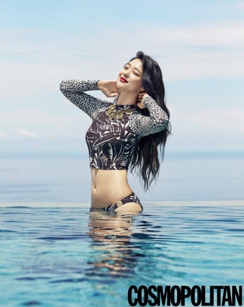 화보 속 설리는 허리가 과감하게 드러나는 래시가드와 수영복, 휴양지에서 빛을 발하는 선드레스를 입고 매혹적인 바디라인을 뽐냈다. 군살없는 몸매와 설리의 섹시한 미모가 눈에 띈다.