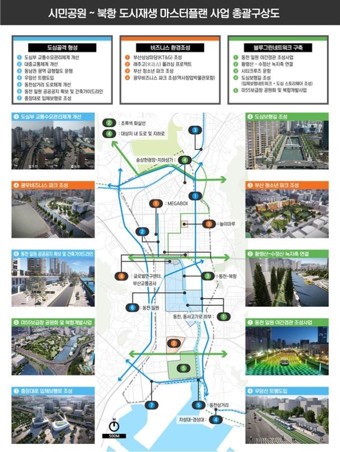 부산시 관계자는 “3월 19일 정책회의에서 각 실·국장, 본부장이 모인 가운데 시민공원~북항연계 도심재생 마스터플랜을 확정하였으며, 향후 단위사업별 추진부서를 지정하여 사업추진을 위한 행정절차를 적극 추진할 예정이다. 도심상권 활성화와 환경개선을 위한 시민의 적극적인 관심과 참여를 당부하고 시민들이 직접 체감할 수 있는 도심부 환경개선이 차질 없이 추진될 수 있도록 노력할 것”이라고 말했다.