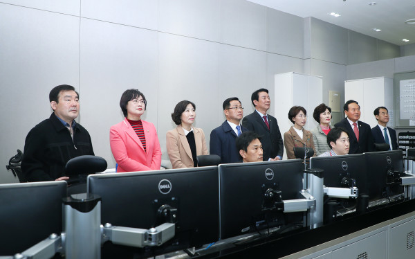 | ▲ 롯데월드타워 방재타워를 방문한 도시건설위원회가 방제센터 업무를 점검하고 있다. (사진제공=송파구의회) | ||