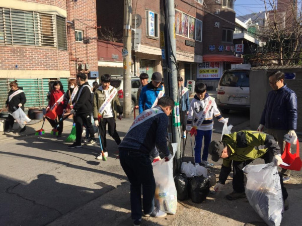 최근 서울 은평구 불광제2동 주민자치위원회가 지역 청소년들 및 학부모들과 함께 유동인구가 많은 골목길 및 등산로 초입구역을 대상으로 대대적인 동네 환경정비를 실시했다. 사진은 길에 떨어진 쓰레기를 줍고있는 아이들과 학부모들의 모습. (사진제공=은평구청)