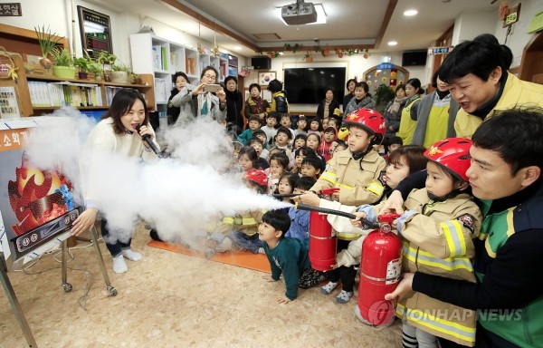 제406차 민방위의 날인 21일 오전 광주 북구 중흥3동 꼬마박사어린이집에서 광주 북구 동주민센터 직원들이 민방위 훈련을 함께 하고 있다.