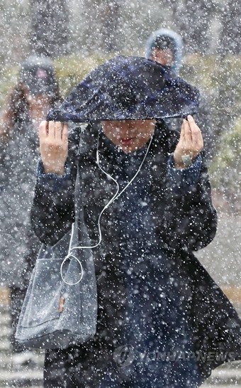 24절기 중 하나인 춘분인 21일 오후 서울 성북구 안암동 일대에 눈이 내려 시민들이 발길을 서두르고 있다.