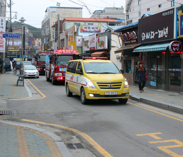 경기 포천소방서는 21일 오후 2시부터 30여분간 신읍동 일원에서 소방서 관계자들이 참석한 가운데 ‘제406차 민방위의 날 훈련’과 연계해 ‘소방차 길 터주기 훈련’을 진행했다. 사진은 훈련에 참여한 소방차들이 훈련에 참여하고 있는 모습. (사진제공=포천소방서)