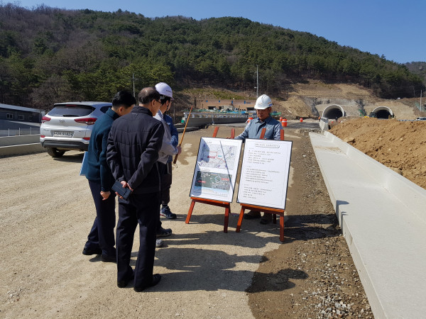 조학수 경기 포천시 부시장은 지난 23일 경기도 건설본부가 오는 6월 개통을 목표로 진행하고 있는 광암~마산 간 지방도 364호선 확·포장 공사현장을 방문했다. 사진은 왕방터널 조성현장을 방문한 조 부시장 등 관계자들의 모습. (사진제공=포천시청)