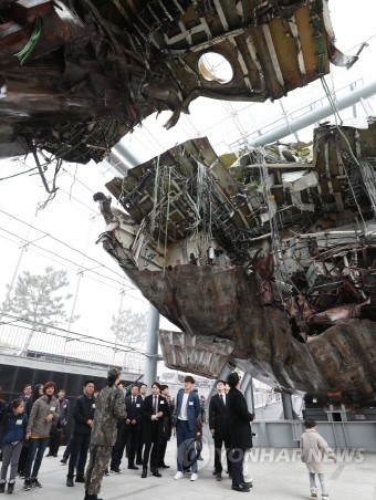 26일 오전 경기도 평택시 해군 제2함대사령부에서 열린 '제8주기 천안함 용사 추모식'에서 유가족 및 참석자들이 천안함을 살펴보고 있다.