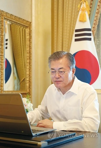 아랍에미리트(UAE)를 공식 방문 중인 문재인 대통령이 26일 오전 (현지시간) 바라카 원전 1호기 완공식에 참석하기에 앞서 숙소 호텔에서 국무회의를 통과한 개헌안의 국회 송부와 공고를 전자결재하고 있다.