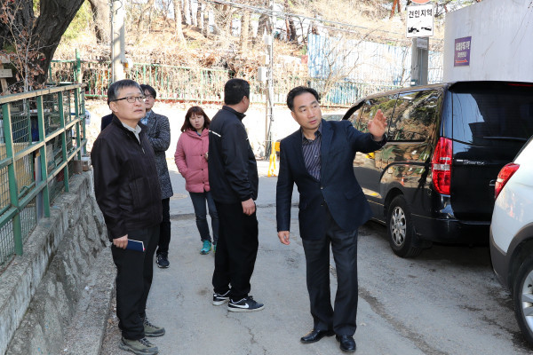 이 의원은 서라벌중학교 후문 골목길 일대를 함께 둘러보면서 높은 학교 담장과 좁은 골목으로 환경이 취약하고 특히 야간에는 골목길에 보안등이 없어 심야에 방범사고가 우려된다는 민원인의 애로사항과 빌라 신축공사로 인해 이면도로 포장 파손 부분을 재포장해 달라는 민원을 청취했다.