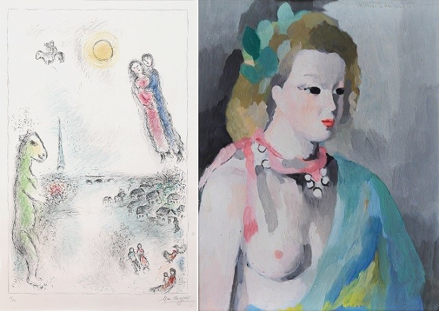 | ▲ 샤갈 Marc Chagall(1887-1985)-마리의 기억-120x100cm-1928-석판(사진 좌측),마리 로랑생 Marie Laurencin(1883-1958) 여인 캔버스에 유채 38x30cm 미상(사진 우측) | ||