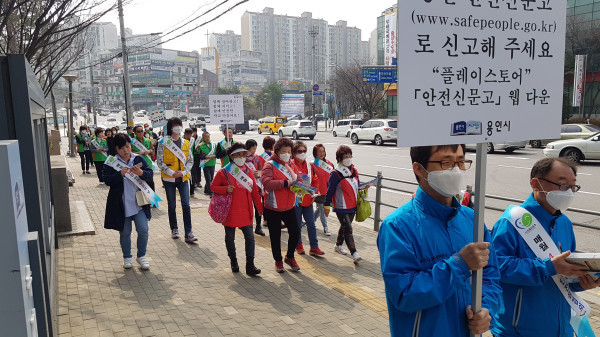 경기 용인시는 28일 수지구 신월초등학교, 토월초등학교 인근에서 개학 후 학교주변 위해요인을 점검하고 안전의식을 확산하기 위한 '안전점검 캠페인'을 실시했다. 이날 캠페인에는 용인시자율방재단, 국민안전현장관찰단, 가정상담센터, 산림보호협회 등의 단체 관계자 70여명이 함께했다. (사진제공=용인시청)