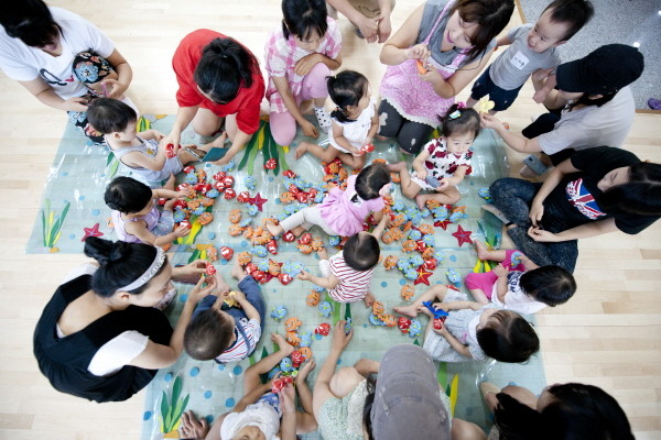 | ▲ 1호점 아이틔움에서 엄마와 어린이들이 물고기 장난감을 가지고 즐거운 시간을 보내고 있다. | ||