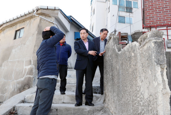 현장을 방문한 이 의원은 민원현장을 직접 살펴보고, 주민들을 만나 위험시설의 조치 방안에 대해 의견을 나눴으며, 사고 예방을 위해 사람이 살지 않은 삼양로73다길 32에 위치한 담장은 고위험시설로 일단 허물기로 했으며, 삼양로73나길 15-15의 옹벽은 현재 상황을 자세히 파악하고 위험요인을 제거해 주민들의 불안을 해소해 줄 것을 도로관리과와 주택과에 요청했다.