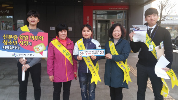 경기 수원시 권선구 금곡동은 최근 청소년지도위원, 직원 합동 청소년 유해업소 지도단속을 실시했다. 사진은 단속에 참여한 관계자들이 기념촬영을 하는 모습. (사진제공=권선구청)