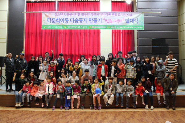 경기 포천시북부희망복지센터는 지난 31일 영중면 주민센터 2층 다목적실에서 청소년 자원봉사자가 참여하는 다문화아동 멘토링 지원사업인 ‘다문화아동 다솜둥지 만들기 멘토링 발대식’을 개최했다. 사진은 발대식에 참여한 관계자들이 기념촬영을 하는 모습. (사진제공=포천시청)