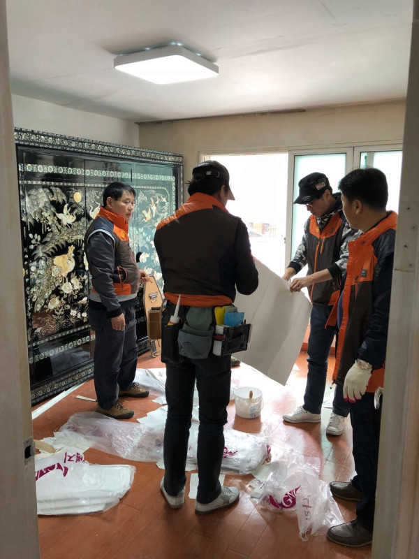 경기 부천시 한울로타리클럽과 동부천로타리클럽은 최근 ‘사랑愛 집수리’ 봉사를 실시했다. 한울로타리클럽 회원 4명은 자활근로로 한부모 가정을 위해 도배, 베란다 페인트칠, 문짝 수리, 환풍기 설치 등을 실시했다. 사진은 자원봉사자들이 집 도면을 살펴보고 있는 모습. (사진제공=부천시청)
