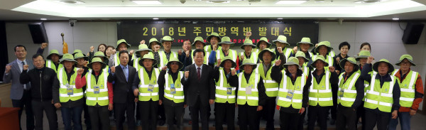 인천 옹진군 보건소는 3일 7개면 주민방역반 45명을 대상으로 '방역 발대식'을 실시했다. 군 주민방역반은 현지에 거주하는 주민으로 구성돼 있으며, 도서별 총 25개반으로 운영한다. 사진은 참여자들이 기념촬영을 하는 모습. (사진제공=옹진군청)