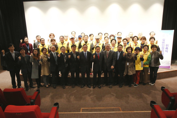 경기 부천시가 3일 실버인권지킴이를 위촉해 지역내 모든 노인복지시설에 대해 노인 인권보호 활동을 전개한다. 이날 시는 노인일자리사업 대상자 30명을 실버인권지킴이로 위촉했다. 사진은 실버인권지킴이와 참석자들이 기념촬영을 하는 모습. (사진제공=부천시청)