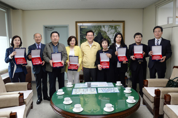 서울 동대문구는 3일 오후 4시 구청장실에서 ‘2018 희망온돌 따뜻한 겨울나기’에 참여한 우수 기부자를 초청해 감사패를 수여했다. 사진은 구청장 및 우수 기부자들이 기념촬영을 하는 모습. (사진제공=동대문구청)