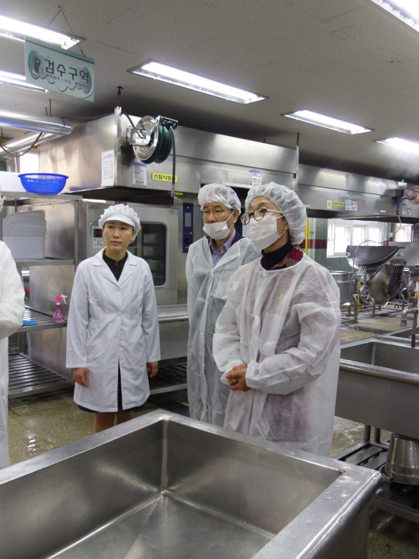 경기도 부천교육지원청 4일 부천부곡초등학교를 불시에 방문해 학교급식 식중독 예방관리 강화를 위한 '학교급식 위생·안전 특별점검'에 나섰다. 사진은 교육장 및 관계자들이 학교급식소를 점검하는 모습. (사진제공=부천교육지원청)
