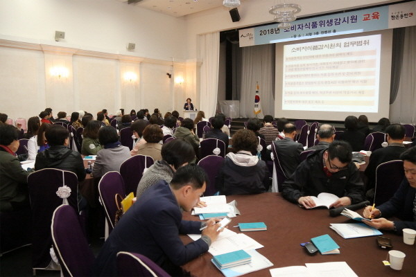 경기 용인시가 5일 시청 컨벤션홀에서 주부, 식품관련 전공자, 시민단체 회원 등 식품위생분야에 관심이 있는 시민들로 식품 안전 파수꾼으로 활동할 ‘비자식품위생감시원’ 87명을 위촉하고 직무교육을 실시했다. 사진은 직무교육 진행 모습.(사진제공=용인시청)