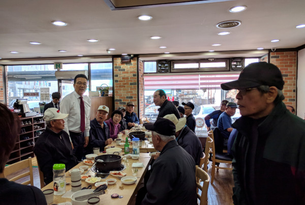 인천 연수구 연수3동 행정복지센터는 최근 지역내 노인일자리 참여 노인 40명을 대상으로 ‘2018년 노인사회활동지원사업 참여자 간담회’를 개최했다. 사진은 구청장과 노인들이 이야기를 나누는 모습. (사진제공=연수구청)