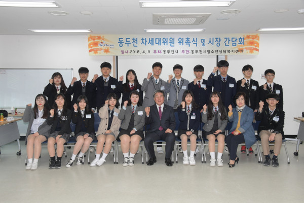 경기 동두천시에서는 9일 시 청소년수련관 3층 분임토의실에서 2018년 동두천시 차세대위원회 위원에 대한 위촉식 및 간담회를 개최했다. 사진은 참여자들이 기념촬영을 하는 모습. (사진제공=동두천시청)